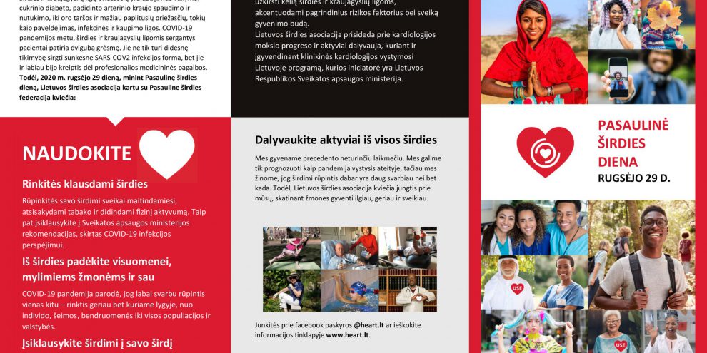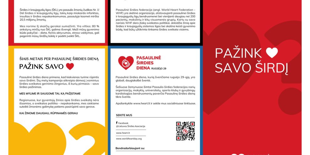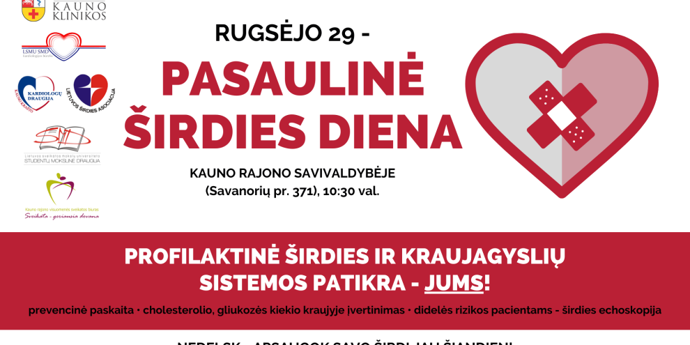 Širdies ir kraujagyslių ligos vis dar yra pagrindinė mirties priežastis Lietuvoje, nors net 80 proc. šių ligų bei su jomis susijusių ankstyvų mirčių galima išvengti. Rugsėjo 29-ąją, minint Pasaulinę širdies dieną, Vilniaus visuomenės sveikatos biuras „Vilnius sveikiau“ ir Lietuvos širdies asociacija primena – geriausias laikas rūpintis savo sveikata ir ją pasitikrinti yra šiandien, rašoma pranešime…